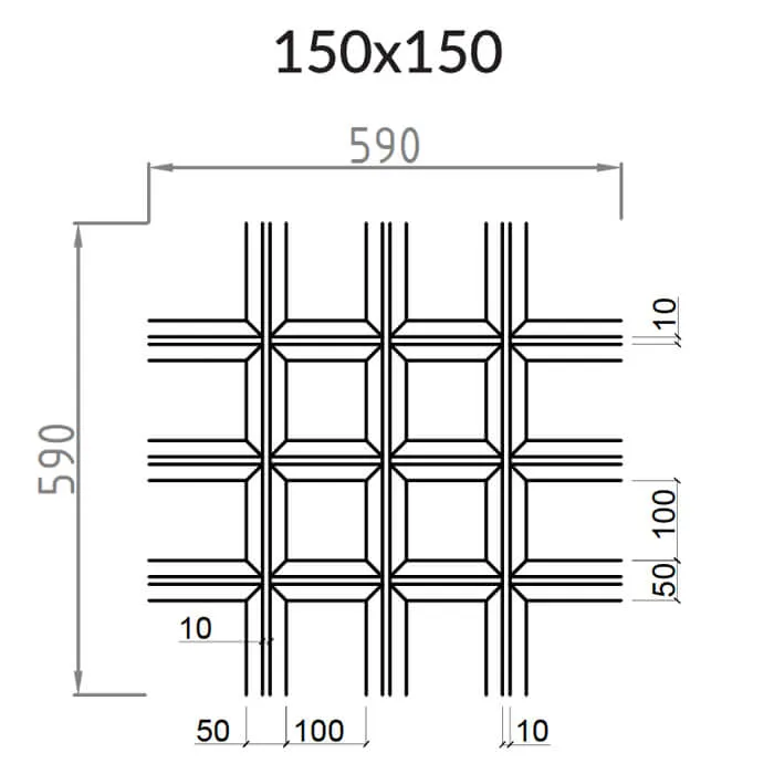 - Размер ячейки: 150х150 мм — улучшенная вентиляция и визуальное расширение пространства.