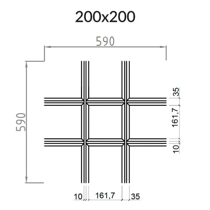 Грильято Пирамидальная ячейка 200х200 мм, металлик, высота 35 мм, ширина 10 мм — это потолок с открытой конструкцией, который сочетает прочность, долговечность и стильный минималистичный дизайн.