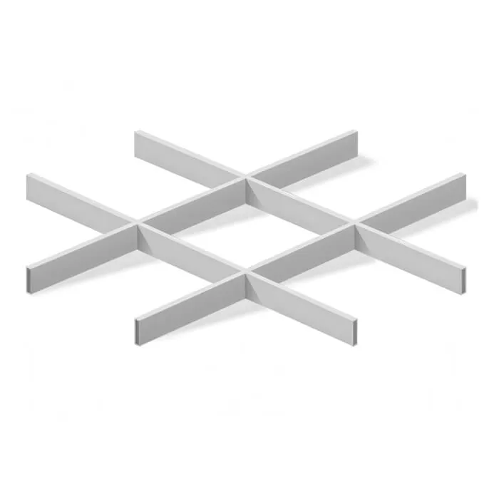 - Размер ячейки: 200x200 мм — крупные ячейки для создания лёгкости и расширения пространства.
