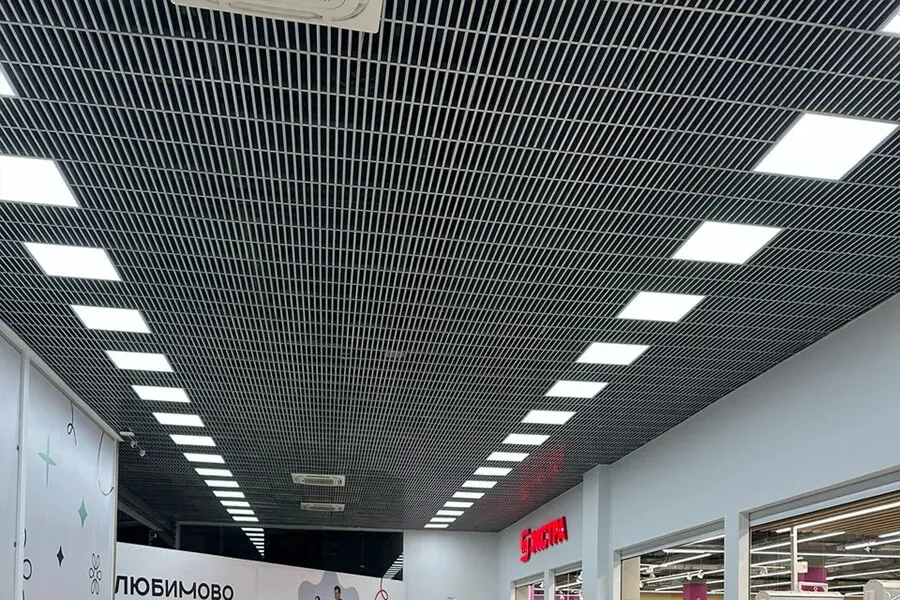 Проект «ТРЦ Любимово» — это пример гармоничного сочетания декоративных и инженерных задач, реализованных через современные потолочные решения.